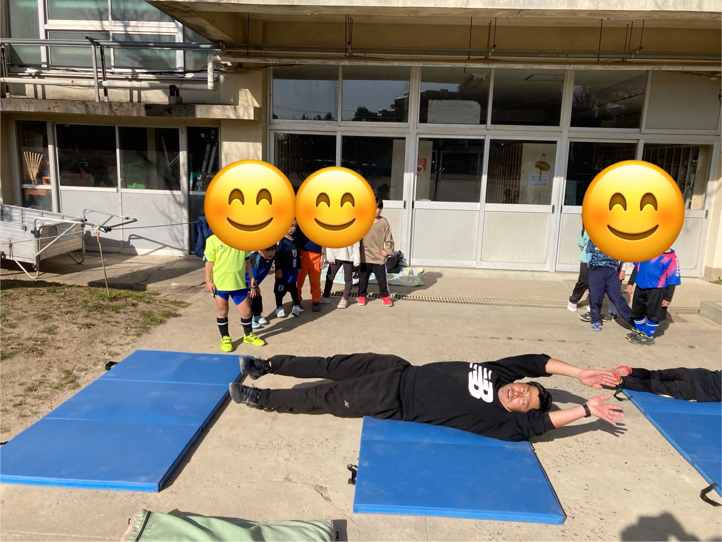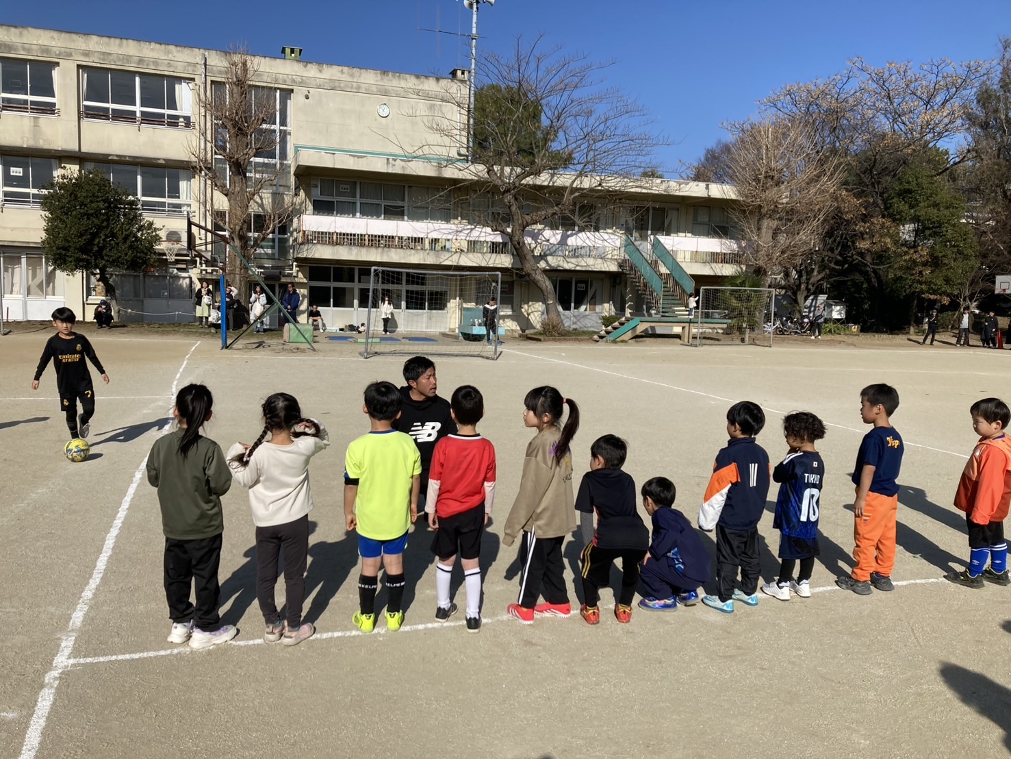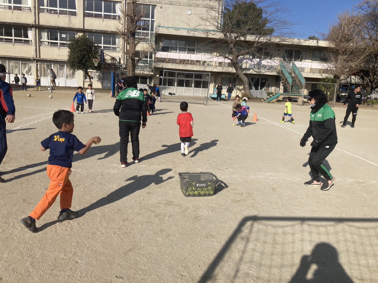 マット運動や跳び箱、テニスボールキャッチなどもあり、サッカーだけでなく、様々な視点から子供達の運動神経を引き出そう!といった内容でした。シュート練習、最後はミニゲームともちろんサッカーに繋げていきます!