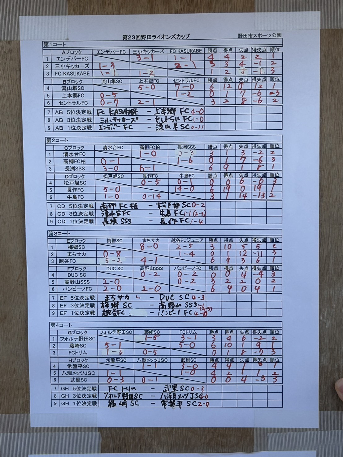 予選リーグ 常盤平SC 1-1 八潮メッツ 常盤平SC 3-0 武里 GH1位決定戦 常盤平SC 0-2 藤崎SC リーグ2位