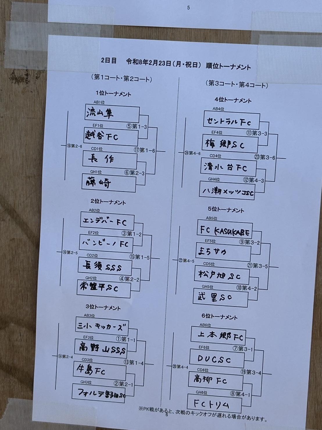 2位トーナメント 準決勝 常盤平SC 1-2 長須SSS 7位決定戦 常盤平SC 0-2 エンデバー